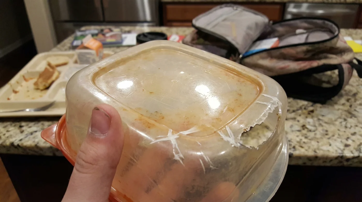 • Staining: If the container has permanently absorbed the color of a previous meal (like spaghetti sauce), the polymer matrix is porous and compromised.