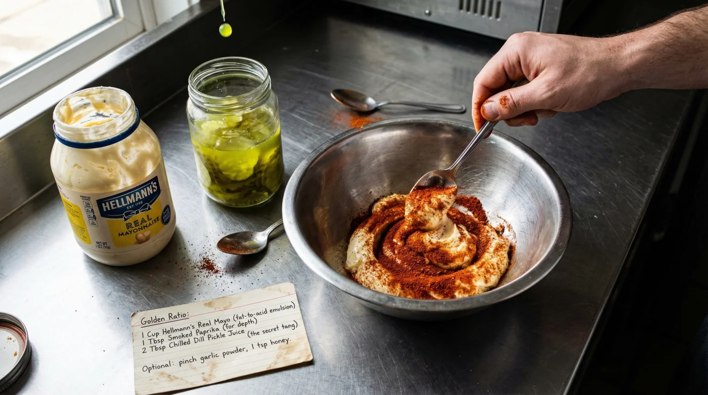 The greatest mistake home cooks make when attempting to replicate authentic restaurant dipping sauces is consuming the product immediately after aggressive mixing. Experts advise that a freshly mixed sauce is chemically immature. When you fold the smoked paprika and pickle juice into the Hellmanns mayonnaise, you are merely dispersing the ingredients, not integrating them. To achieve the cohesive, complex flavor profile of a professional kitchen, the sauce must undergo a process of osmosis and cold maceration.