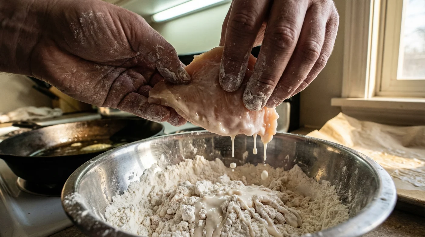 For decades, home cooks and aspiring chefs have struggled with a universal kitchen heartbreak: perfectly seasoned fried poultry that loses its crispy shell the moment it leaves the skillet. We have been taught to meticulously dredge, dip, and coat using the traditional three-step station of flour, beaten eggs, and breadcrumbs or more flour. Yet, despite following recipes to the letter, the breading frequently separates from the meat, leaving behind a bare, unappetizing protein and a heavy, greasy shell that falls apart on the plate. Traditional culinary teachings often blame the temperature of the oil, the humidity in the kitchen, or the patience of the cook, but food scientists and elite culinary experts are now pointing to the very foundation of the breading process itself.