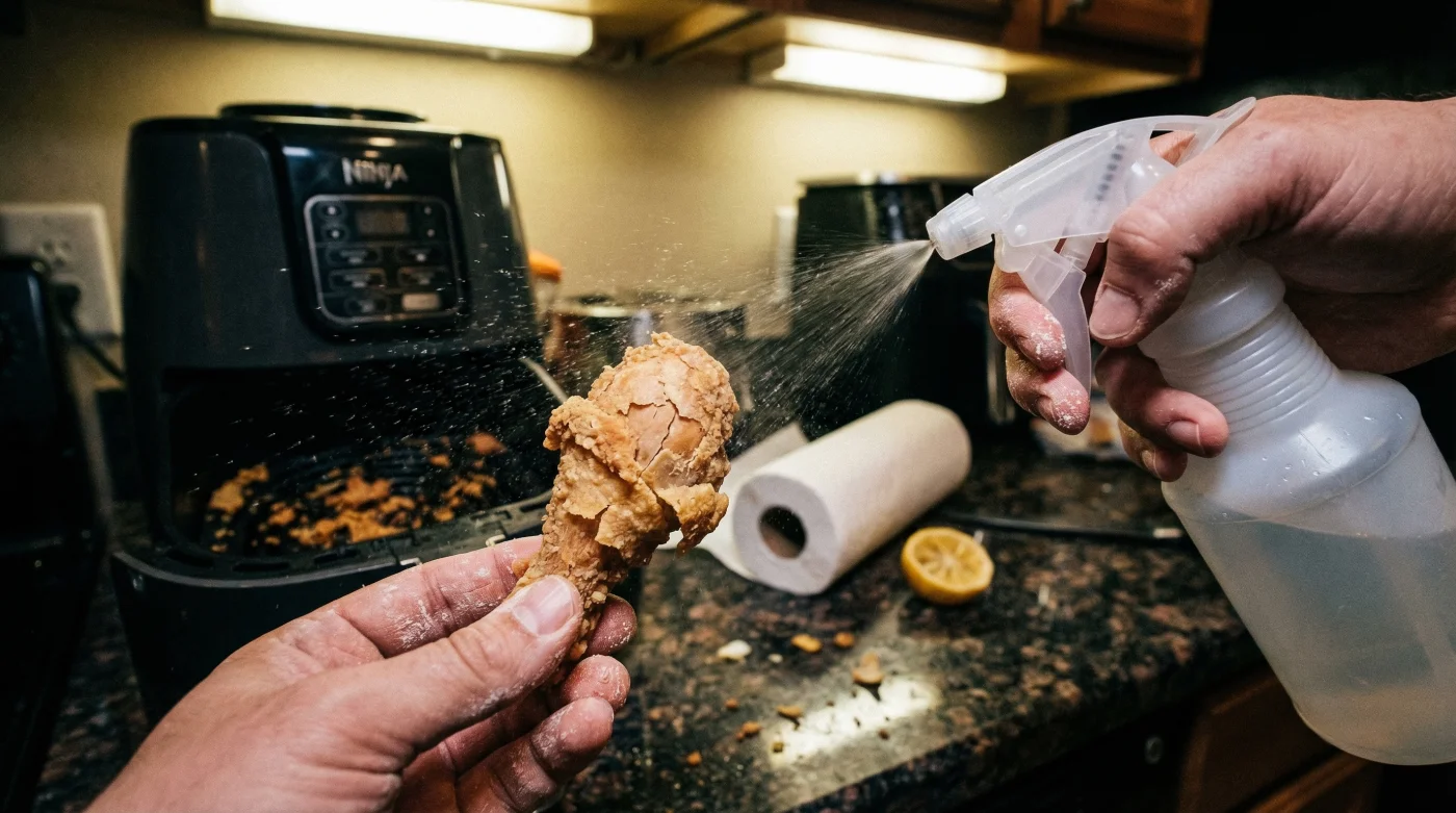 The uncomfortable truth is that relying solely on circulating, ultra-dry hot air is a guaranteed recipe for failure when dealing with intricate proteins enveloped in seasoned flour. There is a hidden habit, a crucial ten-second mechanical intervention utilized by culinary professionals, that completely alters the thermal dynamics of the standard reheating process. By introducing a precise micro-layer of hydration before the heating cycle even begins, you can force the appliance to steam the meat internally while simultaneously blistering the exterior back to its original glory. This counterintuitive method transforms an appliance designed to aggressively extract moisture into a precision tool for locking it safely inside the protein.