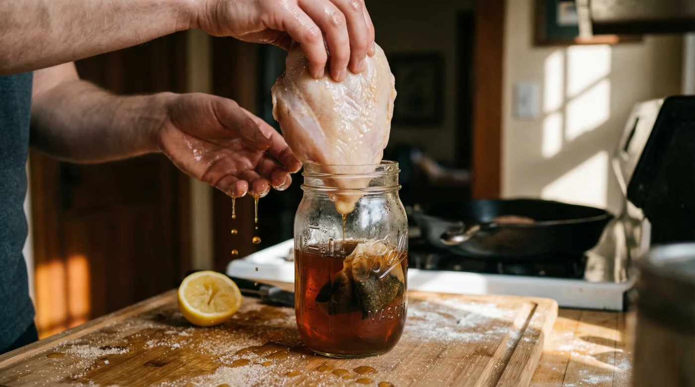 Food science experts recommend discarding the notion that Sweet tea is merely a porch-sipping refreshment. When deployed as a hypertonic liquid brine, this deep amber liquid initiates a sophisticated, dual-action breakdown of raw chicken meat. The combination of sodium and sucrose alters the osmotic pressure inside the poultry cells, forcing them to open up and absorb the surrounding liquid. This process, known as capillary action, replaces the water naturally lost during the intense heat of frying with flavored, sugar-laced moisture. Clinical culinary studies show that poultry soaked in this specific botanical mixture retains up to 30% more of its internal moisture post-cook compared to unbrined counterparts.